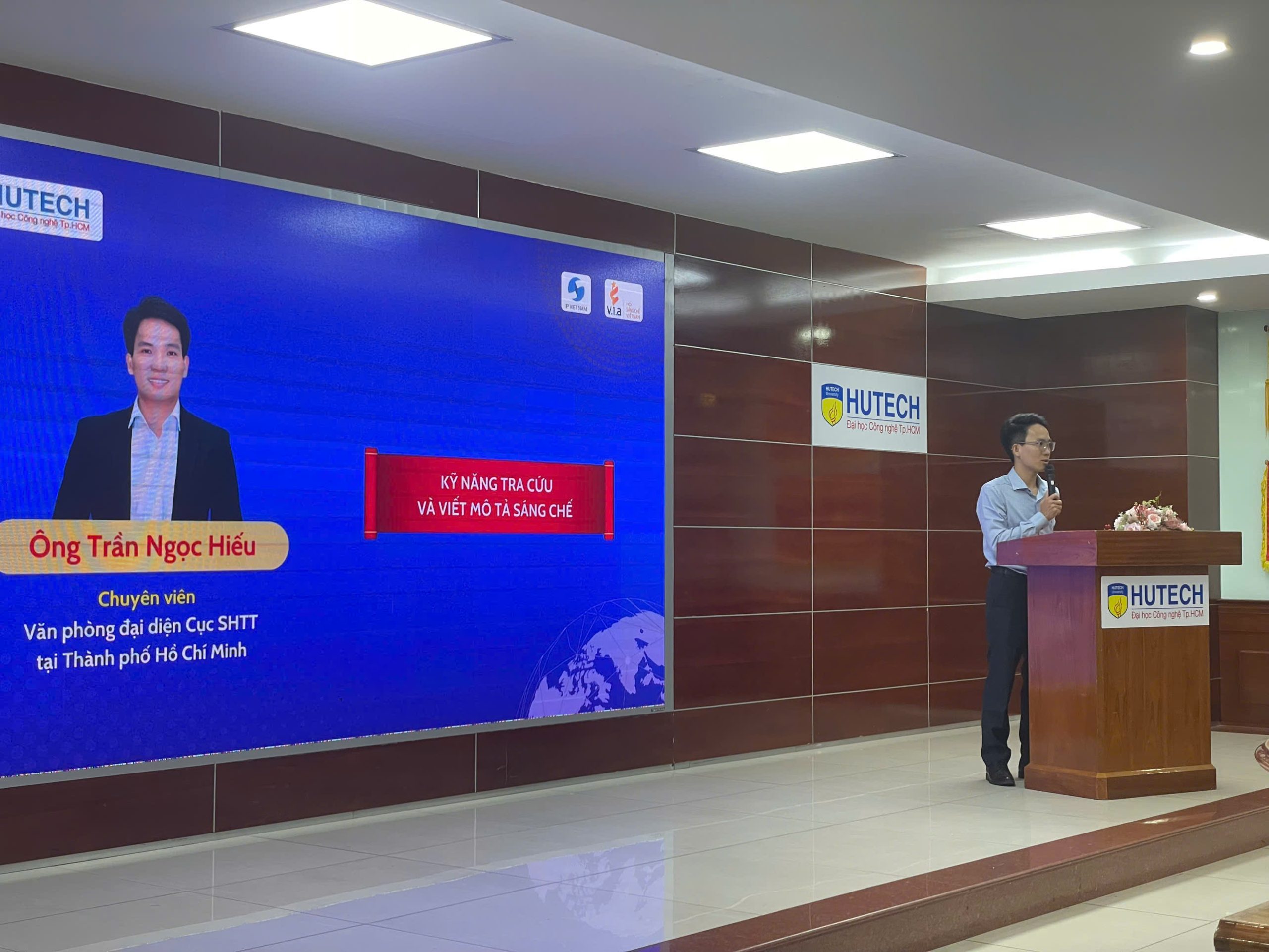 Tiếp nối chương trình, ông Trần Ngọc Hiếu – Văn phòng miền Nam, Cục Sở hữu trí tuệ trình bày chuyên đề “Kỹ năng tra cứu và viết mô tả sáng chế”.